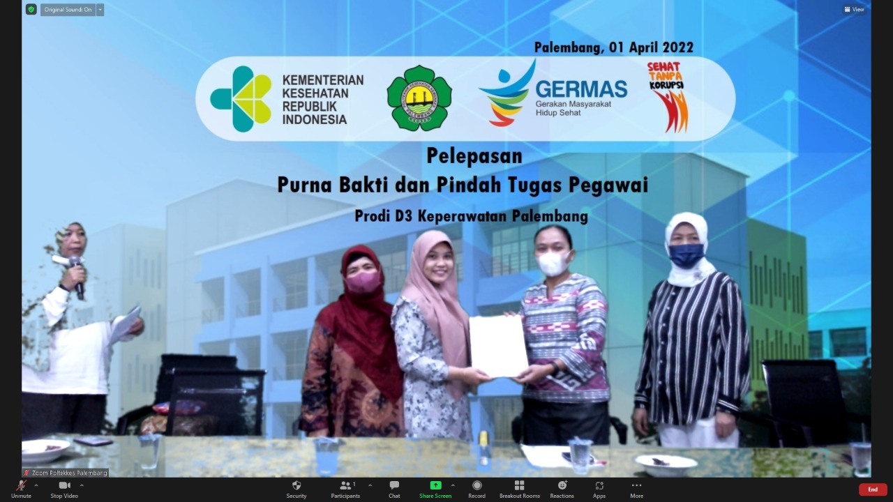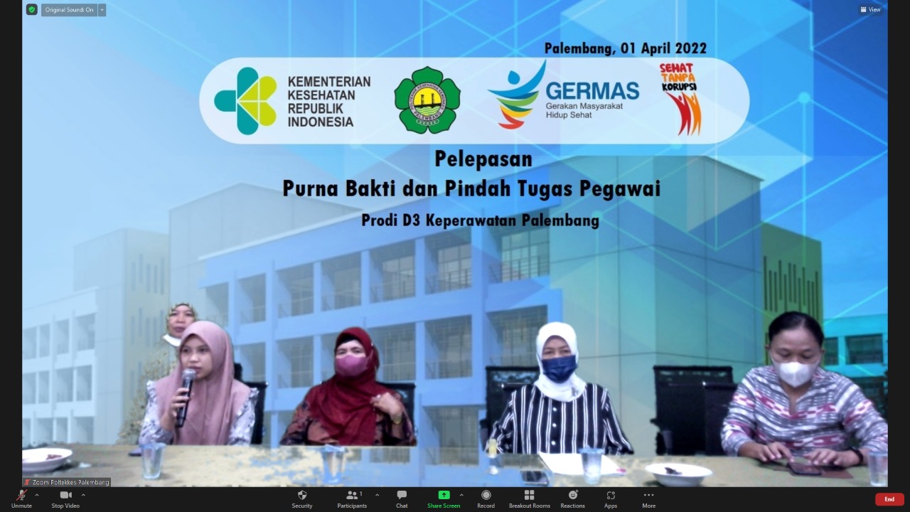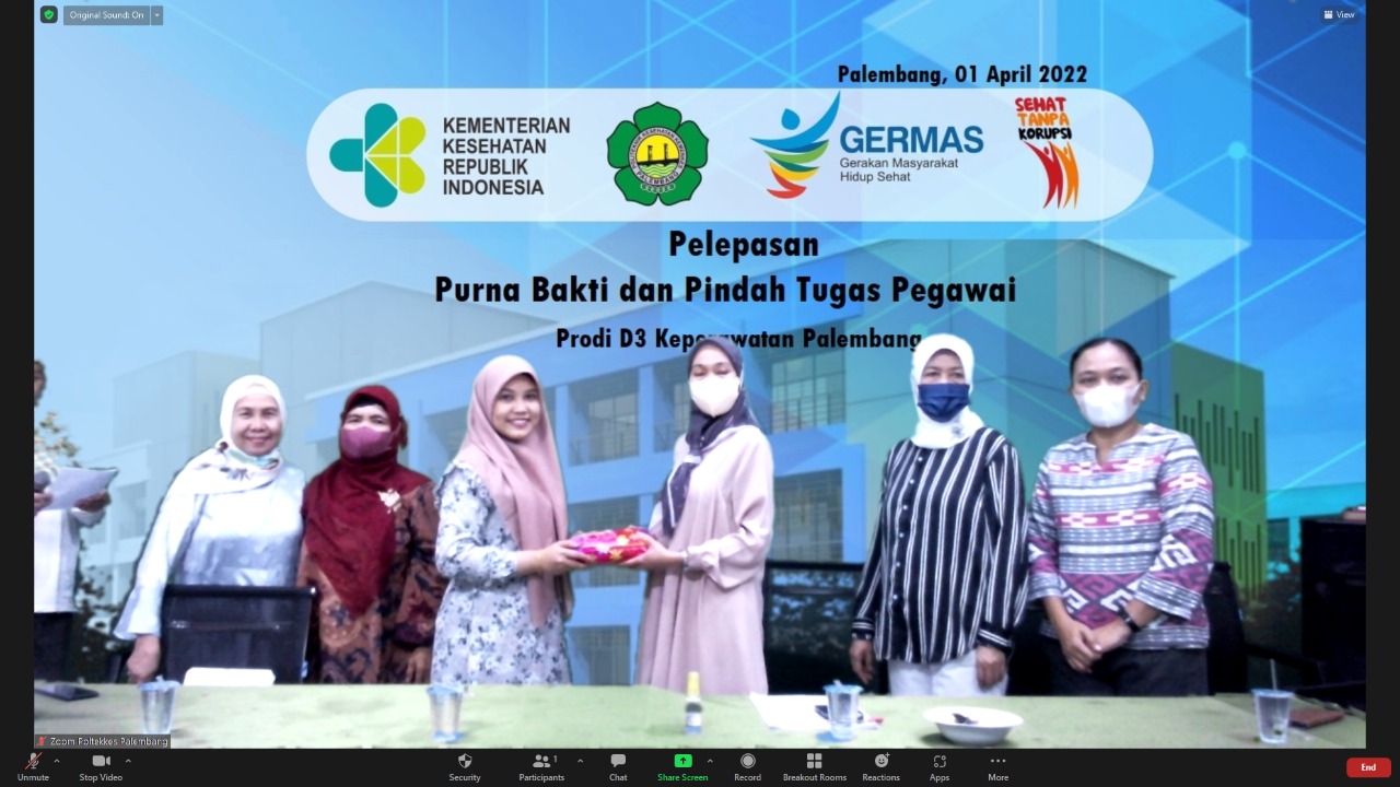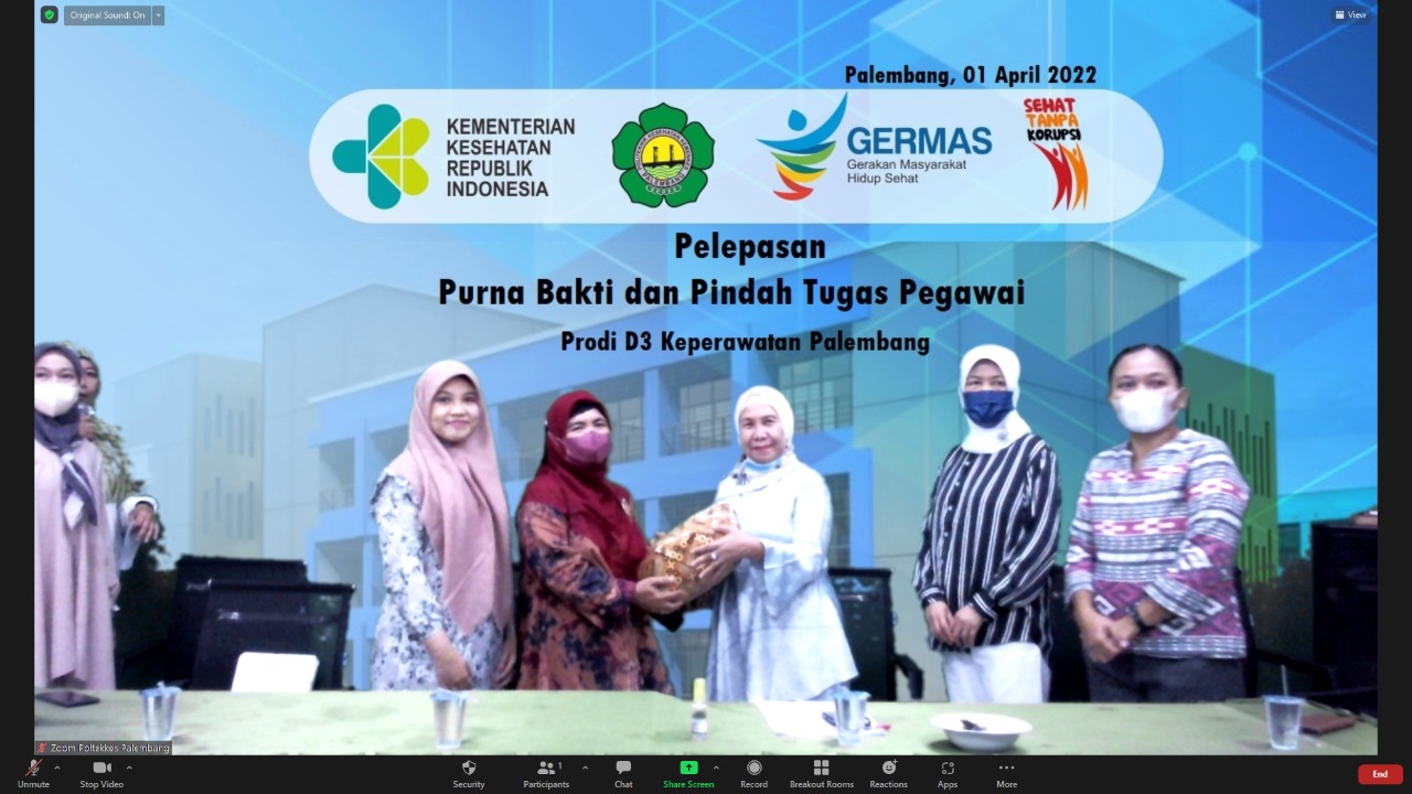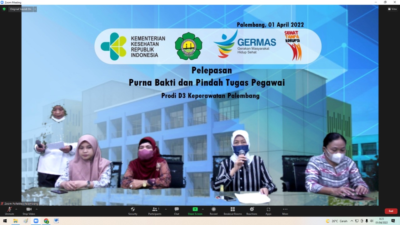Jurusan Keperawatan Palembang Poltekkes Kemenkes Palembang hari ini melepas pegawai yang purna tugas yaitu ibu Ratna Madani yang sudah bergabung di keperawatan Palembang 5 tahun dan pegawai yang pindah tugas ke prodi Keperawatan Lubuklinggau yaitu Risti Candani. Jurusan keperawatan meras bersedih dalam melepas pegawai tersebut karena dedikasinya kepada jurusan keperawatan. Dalam sambutannya ketua jurusan mengucapkan terimakasih atas pengabdian ibu Ratna Madani dan Risti Candani di jurusan Keperawatan Palembang dan meminta maaf bila selama bersama terjadi salah dlam perkataan dan perbuatan. Pesan dan kesan yang disampaikan oleh kedua pegawai tersebut yaitu mereka merasa puas bekerja Poltekkes Kemenkes Palembang terkhusus di jurusan keperawatan Palembang. Semoga bu Ratna Madani bisa menikmati masa purna baktinya dan Risti Candani makin sukses di Lubuklinggau.