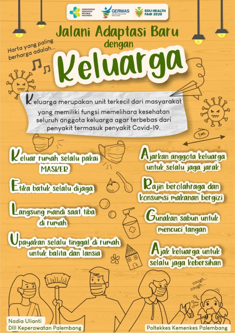 Prodi DIII Keperawatan Palembang menyiapkan dua mahasiswa yang mengikuti lomba Poster Infografis yaitu Bella Aprilia dan Nadia Ulianti dengan dosen pembimbing Dr. Maksuk., SKM., M.Kes. Adapun tema yang diangkat untuk dilombakan yaitu ”Jalani Adaptasi Kebiasaan Baru dengan Keluarga.” Tema ini diangkat karena keluarga merupakan unit terkecil dari masyarakat yang menjalankan fungsinya dalam memelihara kesehatan seluruh anggota keluarga agar terbebas dari penyakit termasuk dalam mencegah penyebaran penyakit Covid 19.Dari dua mahasiswa Prodi DIII Keperawatan Palembang yang dikirim mengikuti perlombaan tersebut salah satu diantaranya memenangkan lomba poster infografis tersebut sebagai Juara I atas nama Nadia Ulianti mahasiswa semester V Prodi DIII Keperawatan Palembang.